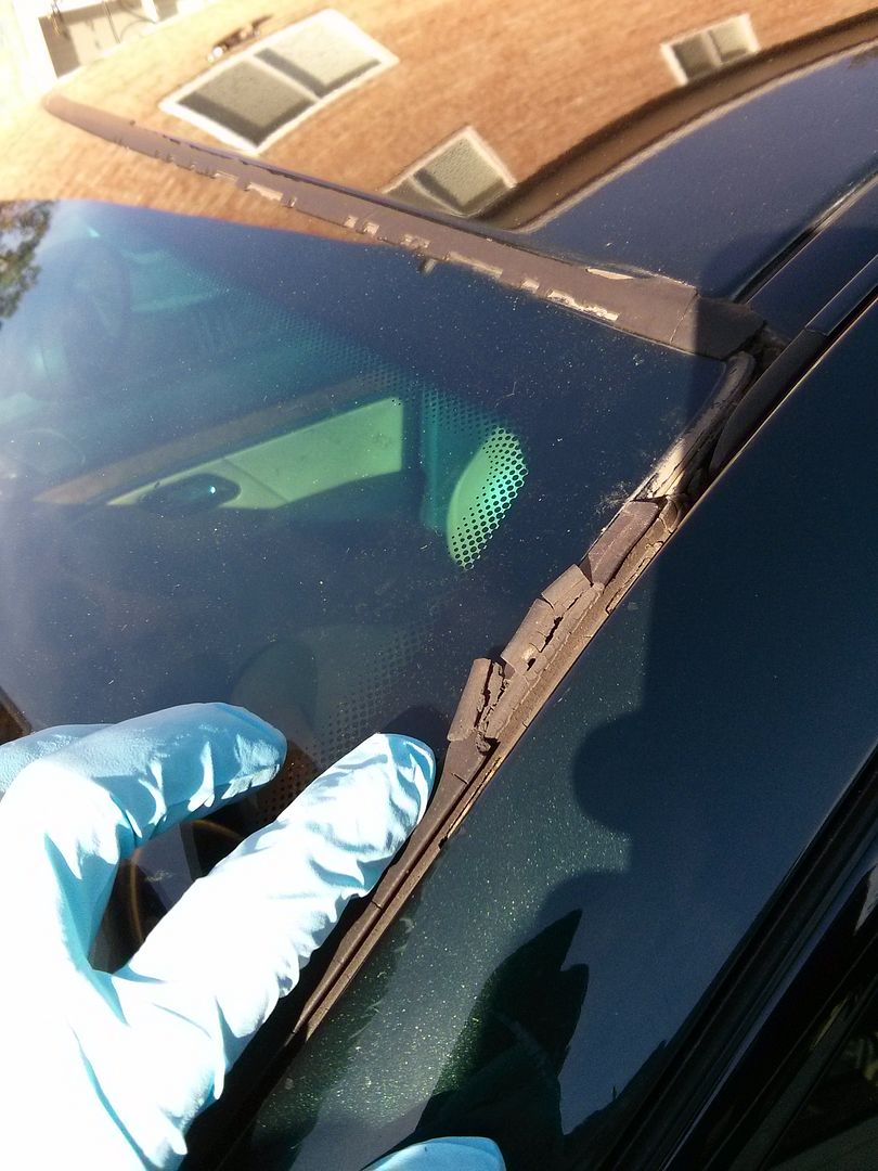 Symptoms - Cracked and chipped windshield rubber seal. For a June 2007 build, the rubber has held up pretty good up until the last few months. It has started to fall apart with the slightest touch (washing the car, etc). From what I've read this is not a weather / rain seal, just a trim part.